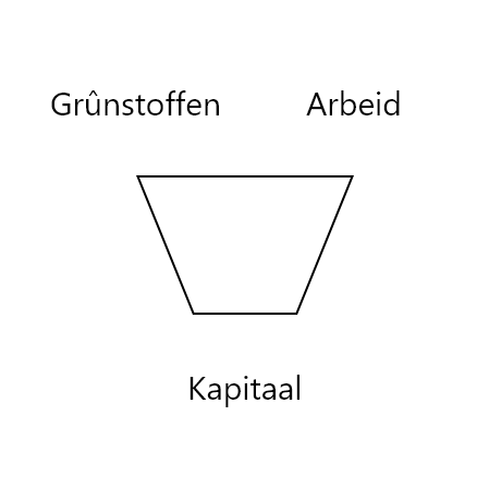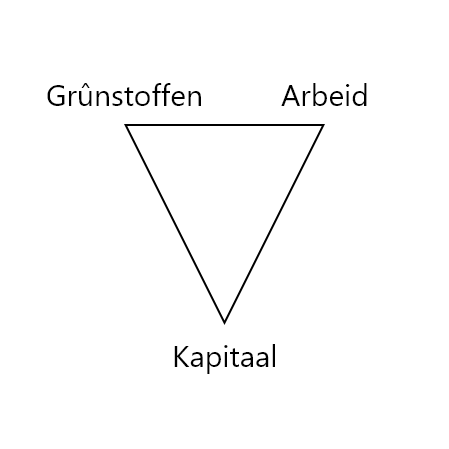 Klimaataksje leant dus. Mar jo allinnich op it klimaat (de faktor grûnstoffen) rjochtsje, sil nea troch de measte minsken akseptearre wurde. Dy wolle fatsoenlik en as it efkes kin ek better libje kinne. De faktor arbeid dus. Dêrom ek sawol arbeid as grûnstoffen boppeoan de trijehoek. It is de minske én de ierde; en net ien fan beide. Yn in ‘sosjaal kapitalisme’ sil de faktor kapitaal dan ek de basis foarmje moatte. Dat is fansels folslein oars as no yn it hjoeddeistige vulgêre kapitalisme.